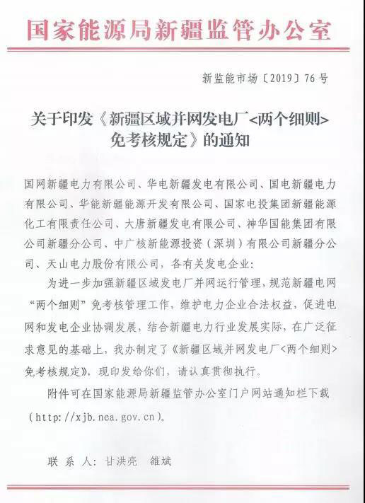 據(jù)國家能源局新疆監(jiān)管辦消息,該機(jī)構(gòu)于近日接連印發(fā)了《新疆區(qū)域并網(wǎng)發(fā)電廠《兩個細(xì)則》免考核規(guī)定》和《新疆區(qū)域并網(wǎng)發(fā)電廠<兩個細(xì)則>補(bǔ)充規(guī)定》等兩份通知。
