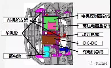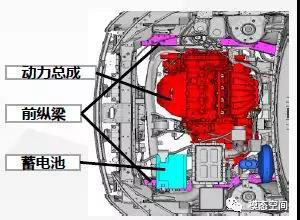 純電動汽車的前艙應(yīng)采用雙層布置方案,電氣支架和懸置支架等緊湊設(shè)計,盡量騰出吸能空間,還要將高壓元件布置在非潰縮吸能區(qū)域。