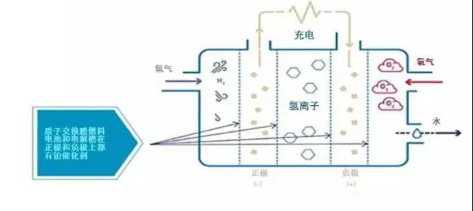 (注:鉑基氫燃料電池工作原理為利用氫氣通過鉑催化劑,分解成兩個(gè)氫離子和兩個(gè)電子,通過質(zhì)子交換膜篩選后,電子由負(fù)極流向正極形成電流驅(qū)動(dòng)電機(jī))