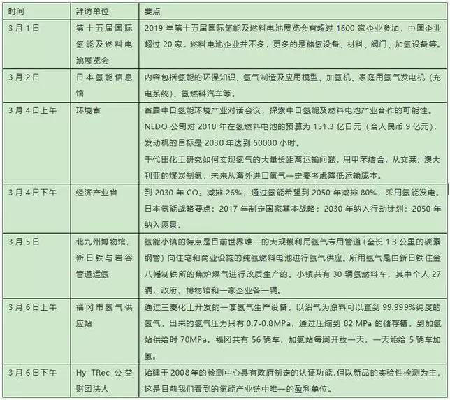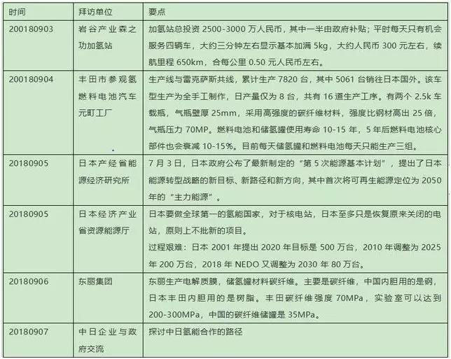 主要收獲:日本從事氫能產(chǎn)業(yè)的科研、制造企業(yè)以及項(xiàng)目進(jìn)度