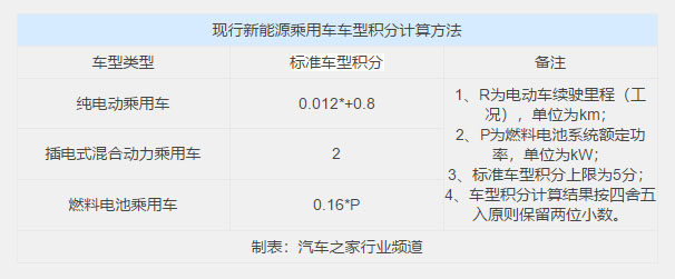 現(xiàn)行新能源乘用車車型積分計(jì)算方法