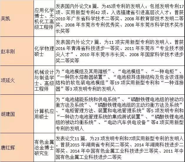 寧德時代的核心技術(shù)主要來源于以吳凱、趙豐剛、項延火、胡建國、唐紅輝等為核心的技術(shù)研發(fā)團隊以自主研發(fā)的方式進(jìn)行的技術(shù)積累。這5名核心技術(shù)人員所取得的專業(yè)資質(zhì)、重要科研成果和獲獎情況如下: