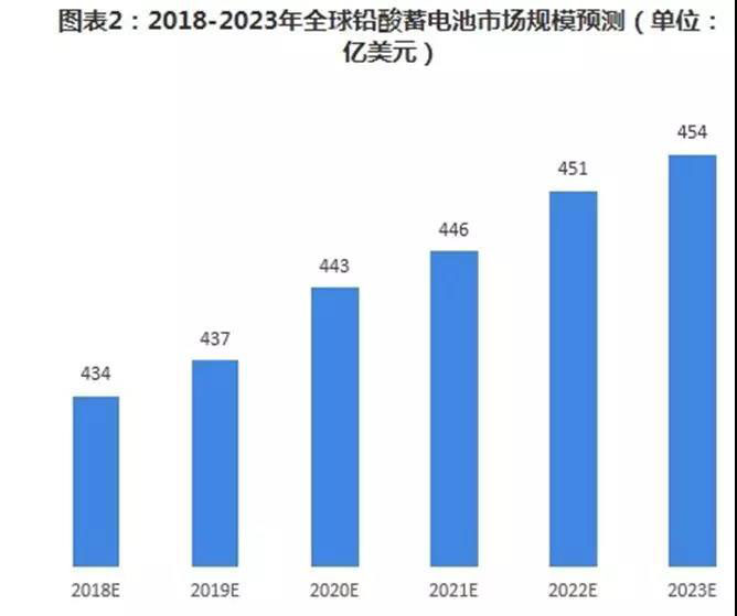 據(jù)統(tǒng)計(jì),2015年鉛酸蓄電池占電池市場(chǎng)一半以上份額約為54.67%。從全球范圍來(lái)看,2015年鉛酸蓄電池市場(chǎng)規(guī)模為422億美元,這一市場(chǎng)規(guī)模仍將保持2%-5%的年增長(zhǎng)率,預(yù)計(jì)2018-2023年,鉛酸蓄電池市場(chǎng)規(guī)模難有大幅度上漲,但仍將維持在400億美元水平上。