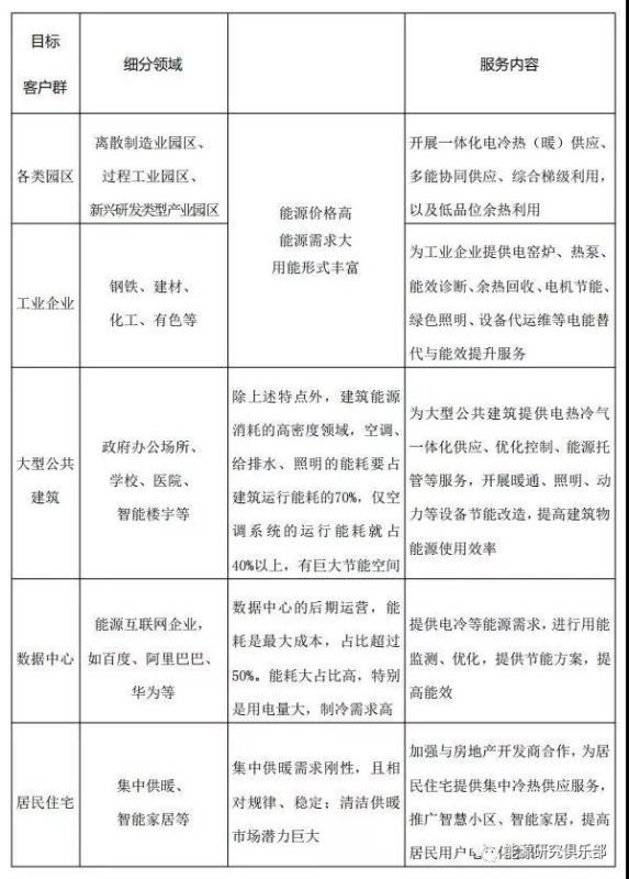 總體來(lái)看,各類園區(qū)和公共建筑,是我國(guó)未來(lái)一段時(shí)期適合開(kāi)展綜合能源服務(wù)的重點(diǎn)對(duì)象。這類客戶能源價(jià)格較高、能源需求巨大、用能形式豐富,能夠取得較好的經(jīng)濟(jì)、環(huán)境、社會(huì)效益。具體來(lái)看,