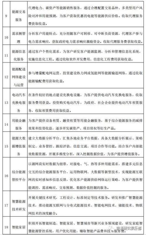 “綜合能源服務(wù)”一詞首次在官方文件提出,是2016年10月國(guó)家發(fā)展改革委、國(guó)家能源局發(fā)布的《有序放開(kāi)配電業(yè)務(wù)管理辦法》中第十二條指出的“配電網(wǎng)運(yùn)營(yíng)者可有償為各類用戶提供增值服務(wù)。包括但不限于:用戶多種能源優(yōu)化組合方案,提供發(fā)電、供熱、供冷、供氣、供水等智能化綜合能源服務(wù)”,至此綜合能源服務(wù)的萌芽出現(xiàn)。