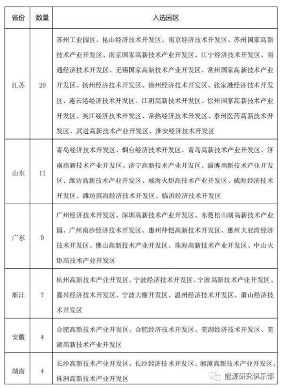 由于工業(yè)園區(qū)發(fā)展良莠不齊,而綜合能源服務(wù)當(dāng)前經(jīng)濟(jì)性尚未顯現(xiàn),因此要甄選資質(zhì)好的工業(yè)園區(qū)布局示范項(xiàng)目,才能保障其盡快落地。根據(jù)同濟(jì)大學(xué)最新發(fā)布的《2018中國(guó)產(chǎn)業(yè)園區(qū)持續(xù)發(fā)展藍(lán)皮書(shū)》,從各工業(yè)園區(qū)持續(xù)發(fā)展能力排名來(lái)看,排名前十的產(chǎn)業(yè)園區(qū)為中關(guān)村國(guó)家自主創(chuàng)新示范區(qū)、上海張江國(guó)家自主創(chuàng)新示范區(qū)、蘇州工業(yè)園區(qū)、廣州經(jīng)濟(jì)技術(shù)開(kāi)發(fā)區(qū)、武漢東湖國(guó)家自主創(chuàng)新示范區(qū)、成都高新技術(shù)產(chǎn)業(yè)開(kāi)發(fā)區(qū)、北京經(jīng)濟(jì)技術(shù)開(kāi)發(fā)區(qū)、合肥高新技術(shù)產(chǎn)業(yè)開(kāi)發(fā)區(qū)、深圳高新技術(shù)產(chǎn)業(yè)開(kāi)發(fā)區(qū)、天津經(jīng)濟(jì)技術(shù)開(kāi)發(fā)區(qū)。從各省入選的百?gòu)?qiáng)產(chǎn)業(yè)園區(qū)數(shù)量來(lái)看,江蘇的產(chǎn)業(yè)園數(shù)量位居榜首,為20家;其次為山東,產(chǎn)業(yè)園數(shù)量為11家;排名第三的是廣東,產(chǎn)業(yè)園數(shù)量為9家,第四名為浙江,7家;并列第5名的為安徽和湖南,均為4家,見(jiàn)表3。