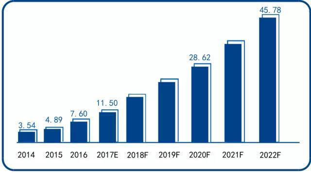 國(guó)內(nèi)碳納米管導(dǎo)電劑市場(chǎng)現(xiàn)如今已經(jīng)在10億元每年左右,隨著動(dòng)力電池產(chǎn)業(yè)的快速增長(zhǎng),預(yù)計(jì)到2022年將達(dá)到45億元的國(guó)內(nèi)市場(chǎng)。加上碳納米管另外的電池應(yīng)用市場(chǎng),逐漸會(huì)成為百億級(jí)的市場(chǎng)。