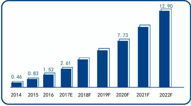 2014-2022年中國(guó)碳納米管導(dǎo)電漿料市場(chǎng)規(guī)模分析及預(yù)測(cè)(萬(wàn)噸)
