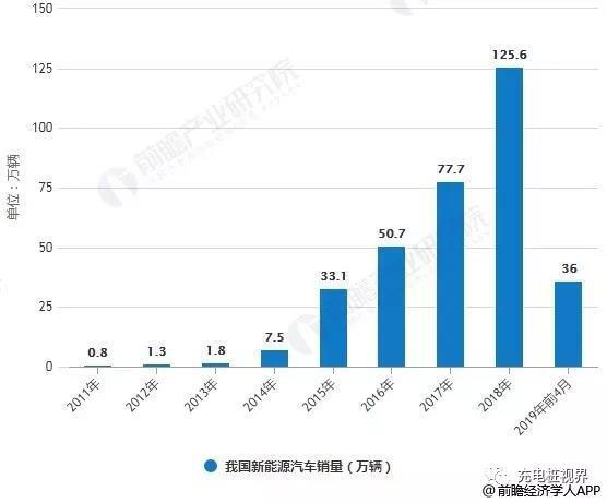 2014年以來(lái),隨著國(guó)家相繼出臺(tái)政策扶持新能源汽車行業(yè)的發(fā)展,我國(guó)新能源汽車市場(chǎng)開(kāi)始得到迅猛發(fā)展。據(jù)前瞻產(chǎn)業(yè)研究院發(fā)布的《中國(guó)新能源汽車行業(yè)市場(chǎng)前瞻與投資戰(zhàn)略規(guī)劃分析報(bào)告》統(tǒng)計(jì)數(shù)據(jù)顯示,到2018年我國(guó)新能源汽車產(chǎn)銷規(guī)模已分別達(dá)到127.0萬(wàn)輛和125.6萬(wàn)輛,同比分別增長(zhǎng)了59.9%和61.7%。截止至2019年4月中國(guó)新能源汽車產(chǎn)銷量為10.2萬(wàn)輛和9.7萬(wàn)輛,比上年同期分別增長(zhǎng)25.0%和18.1%。累計(jì)方面,2019年1-4月中國(guó)新能源汽車產(chǎn)銷累計(jì)達(dá)到了36.8萬(wàn)輛和36.0萬(wàn)輛,比上年同期分別增長(zhǎng)58.5%和59.8%。