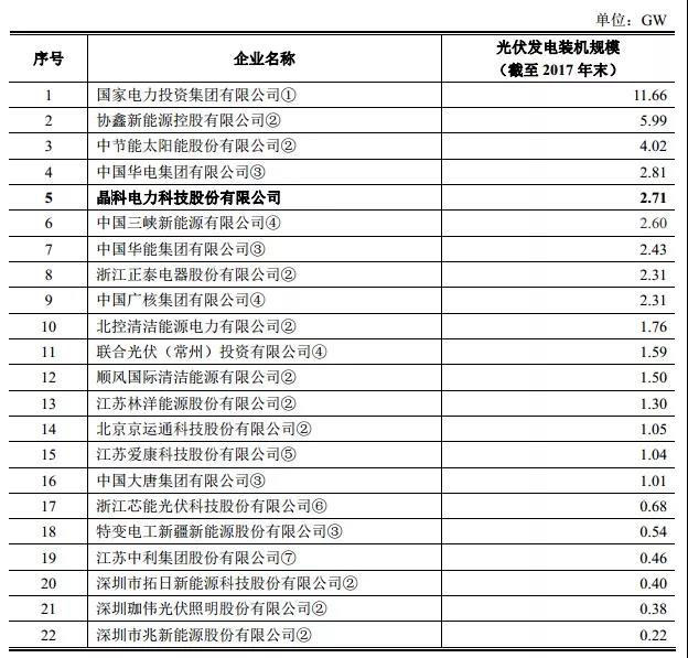 在光伏電站投資領(lǐng)域,華能發(fā)展更為緩慢。晶科的招股說明書顯示,截至2017年底,華能集團(tuán)僅僅以2.43GW的總裝機(jī)位居第7位,而國(guó)電投的總裝機(jī)容量高達(dá)11.66GW。