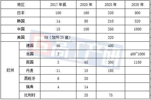 分析來看,2018~2020年是中國加氫站建設(shè)的關(guān)鍵時(shí)期,到2020年底保有量將從2017年的15座增加到100座以上。加氫站規(guī)模不斷提升,從當(dāng)前200kg/d的規(guī)模提升到500~1000kg/d,甚至更大。2018~2020年海外加氫站也在密集建設(shè),預(yù)計(jì)到2020年海外加氫站保有量超過850個(gè),較2017年增幅超過60%。