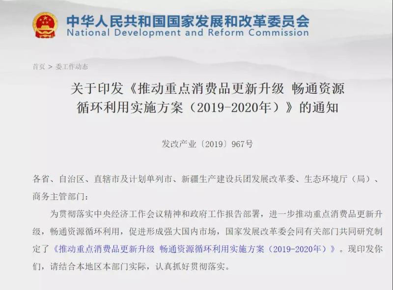 6月6日,國(guó)家發(fā)展改革委、生態(tài)環(huán)境部、商務(wù)部聯(lián)合公布《關(guān)于印發(fā)<推動(dòng)重點(diǎn)消費(fèi)品更新升級(jí) 暢通資源循環(huán)利用實(shí)施方案(2019-2020年)>的通知》(以下簡(jiǎn)稱《實(shí)施方案》),其中提出嚴(yán)禁對(duì)新能源汽車實(shí)行限行、限購。“著力破除限制汽車消費(fèi)的市場(chǎng)壁壘,嚴(yán)禁各地出臺(tái)新的汽車限購規(guī)定,大力推動(dòng)新能源汽車消費(fèi)應(yīng)用?!眹?guó)家發(fā)展改革委相關(guān)負(fù)責(zé)人在解讀《實(shí)施方案》時(shí)強(qiáng)調(diào)。