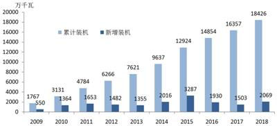 圖2 2009年以來風(fēng)電年度新增裝機(jī)和累計(jì)裝機(jī)