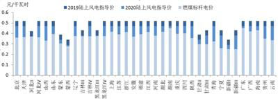 圖3 各省當(dāng)前燃煤標(biāo)桿電價(jià)和2019年、2020年陸上風(fēng)電指導(dǎo)價(jià)
