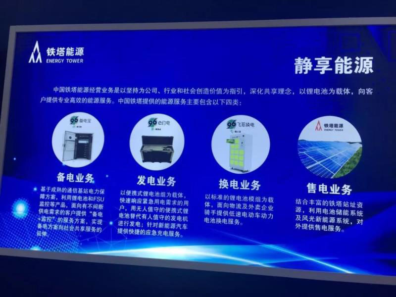 據(jù)行業(yè)媒體南方能源觀察報(bào)道,今年5月在福建福州舉行的第二屆數(shù)字中國(guó)建設(shè)峰會(huì)上,鐵塔能源已經(jīng)以獨(dú)立品牌身份亮相,并公開展示了“備電、發(fā)電、換電、售電”等能源服務(wù)資料。