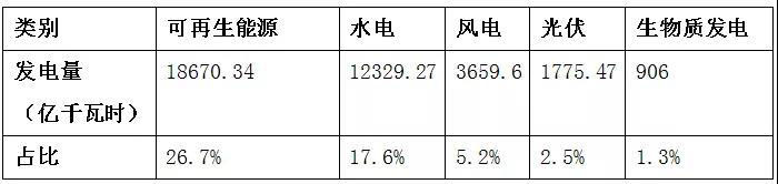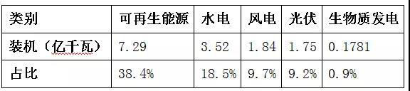 數(shù)據(jù)顯示,截至2018年年底,我國可再生能源發(fā)電裝機占總裝機比重為38.4%,其中水電在可再生能源中占比48.3%,風(fēng)電、光伏發(fā)電等新能源占比51.7%;可再生能源的發(fā)電量占比為26.7%,新增裝機中可再生能源占比為61.5%。風(fēng)電和光伏發(fā)電引領(lǐng)了可再生能源的發(fā)展,在新增的可再生能源裝機中,兩者合計占比85.3%。