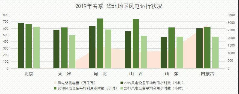 從設(shè)備平均利用小時(shí)數(shù)上看,2019年第一季度,華北地區(qū)風(fēng)電設(shè)備平均利用小時(shí)數(shù)普遍較高,其中北京最高達(dá)到683小時(shí)、天津較低為578小時(shí)。與去年同期相比,華北區(qū)域風(fēng)電設(shè)備平均利用小時(shí)數(shù)出下了較大幅度的下滑,其中山西、山東、河北下滑幅度分別達(dá)到183小時(shí)、144小時(shí)、116小時(shí)。