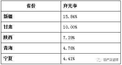 2018年中國西北各省棄光率統(tǒng)計