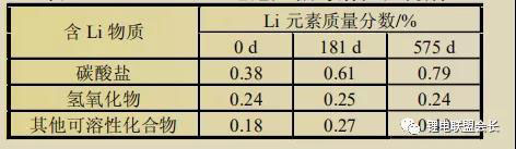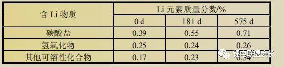 表3 使用ASR電解液100%DOD電池陽極可溶性鋰構(gòu)成
