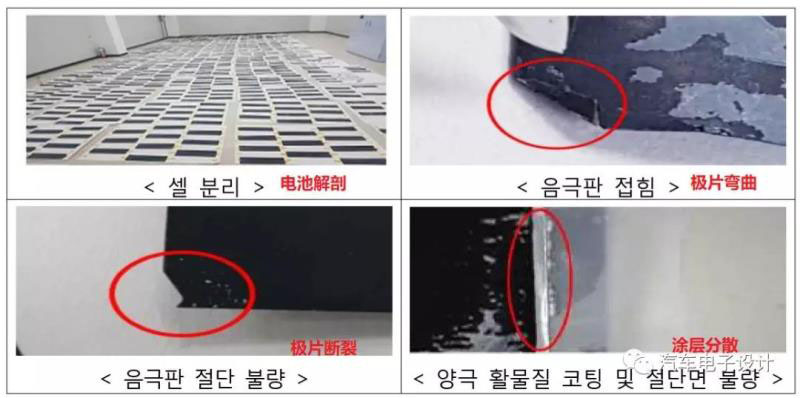 通過電池拆解分析確認(rèn)電池生產(chǎn)過程中存在一些的缺陷,確認(rèn)許多事故使用同一工廠同一批次生產(chǎn)的電池。結(jié)果發(fā)現(xiàn)這些同批次的電池里面極片上活性物質(zhì)的涂層不良等。