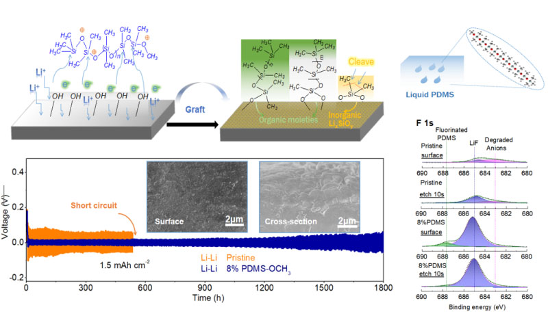液態(tài)聚二甲基硅氧烷的界面原位催化嫁接以實現(xiàn)無枝晶的鋰電鍍和高可逆的鋰金屬電池