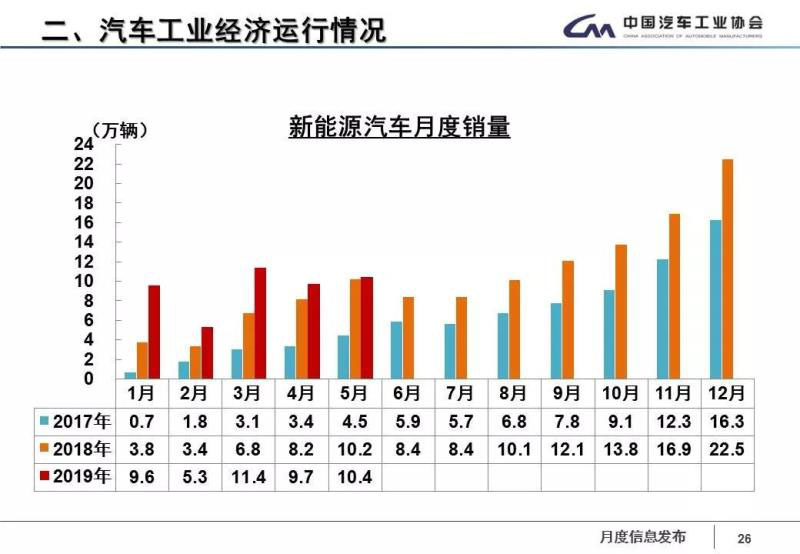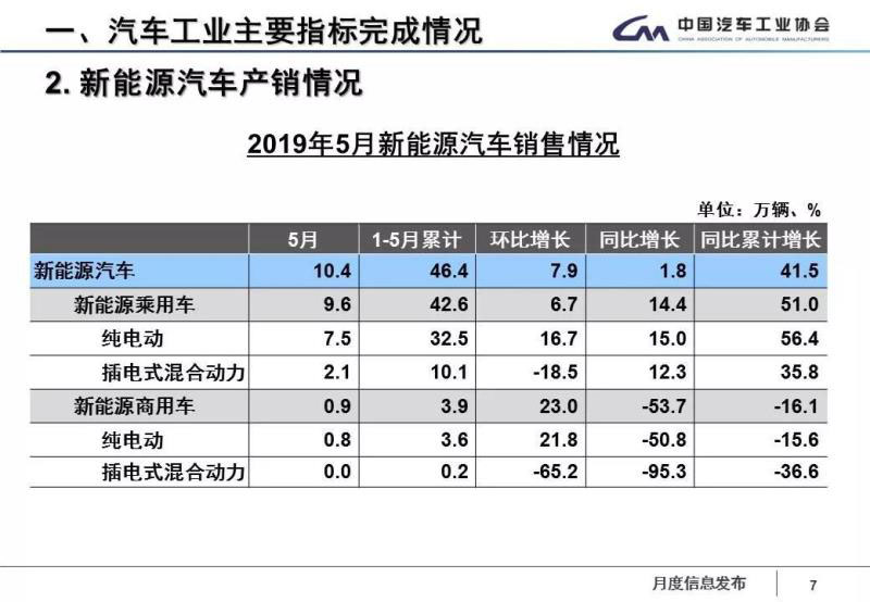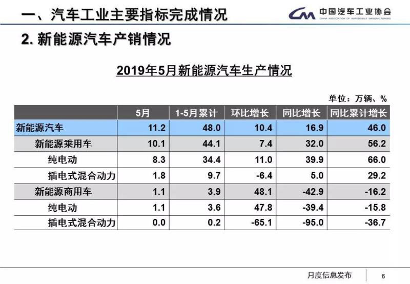 和往常一樣,新能源汽車的增長(zhǎng)情況依舊是一枝獨(dú)秀,但5月份新能源汽車的增長(zhǎng)速度已經(jīng)出現(xiàn)放緩態(tài)勢(shì)。在信息發(fā)布會(huì)上,記者了解到,下半年,隨著符合國(guó)六標(biāo)準(zhǔn)的車型不斷增加,以及減稅降費(fèi)等一系列政策措施效果的持續(xù)顯現(xiàn),特別是6月初國(guó)家發(fā)展改革委、生態(tài)環(huán)境部、商務(wù)部聯(lián)合公布《關(guān)于印發(fā)<推動(dòng)重點(diǎn)消費(fèi)品更新升級(jí) 暢通資源循環(huán)利用實(shí)施方案(2019-2020年)>的通知》,為乘用車市場(chǎng)帶來(lái)相對(duì)積極的作用,新能源汽車產(chǎn)銷有望繼續(xù)保持較快增長(zhǎng)。