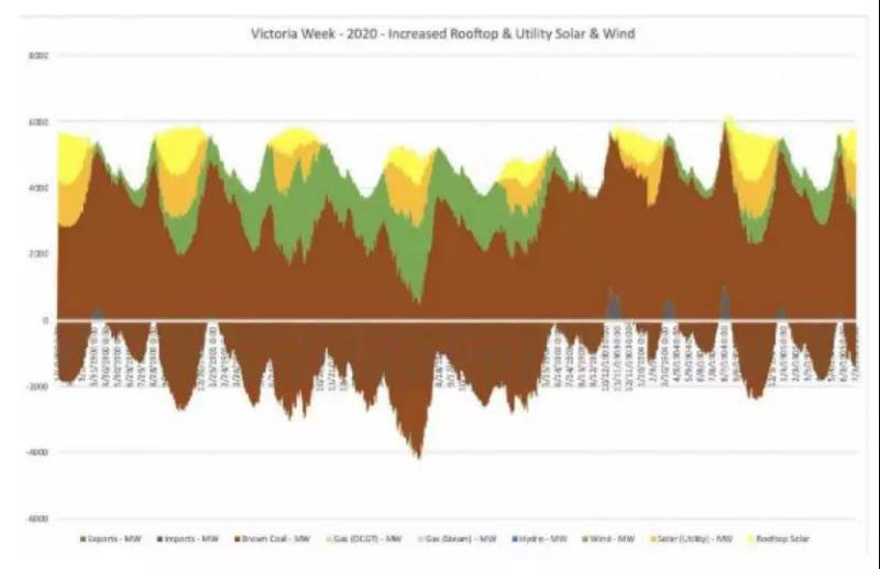 為了弄清這些新型能源將如何改變維多利亞的發(fā)電結(jié)構(gòu)和供需平衡,本文將目前的風(fēng)能、公用事業(yè)太陽能和屋頂太陽能發(fā)電量分別放大了2.1、4.9和1.5倍。因?yàn)槟壳暗墓艿冷佋O(shè)已經(jīng)完成,這些新能源的裝機(jī)量將很可能在12-18個(gè)月的時(shí)間內(nèi)迅速的變化/增加,
