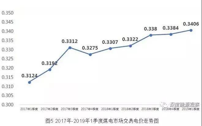2019年1季度,大型發(fā)電集團(tuán)煤電市場交易平均電價(jià)為0.3406元/千瓦時(shí),較去年同期提高0.0099元/千瓦時(shí)。自2017年4季度以來,煤電市場交易平均電價(jià)已連續(xù)六個(gè)季度保持上漲。