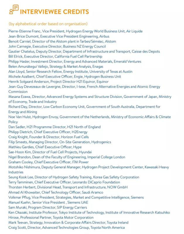 中國儲能網(wǎng)訊:世界能源理事會(WEC)采訪了全球26家能源公司的能源技術主管(名單見后),請他們預測2040年氫能的應用領域,結果綜述如下: