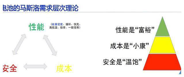在比克看來,作為新能源汽車產(chǎn)業(yè)的重要驅(qū)動(dòng)力,鋰電行業(yè)掌握著應(yīng)對(duì)以上矛盾的破局之法。陳輝表示:“著名的馬斯洛需求層次理論解釋了人類需求的階梯性發(fā)展,這一理論同樣適用于電池發(fā)展,安全、成本和性能三大需求中,安全是“溫飽”,成本是“小康”,性能是“富?!保呷币徊豢捎窒嗷ブ萍s。面對(duì)這一局面,校準(zhǔn)電池發(fā)展的天平,尋求安全、成本、性能三方的平衡將為新能源汽車產(chǎn)業(yè)帶來全新突破。”