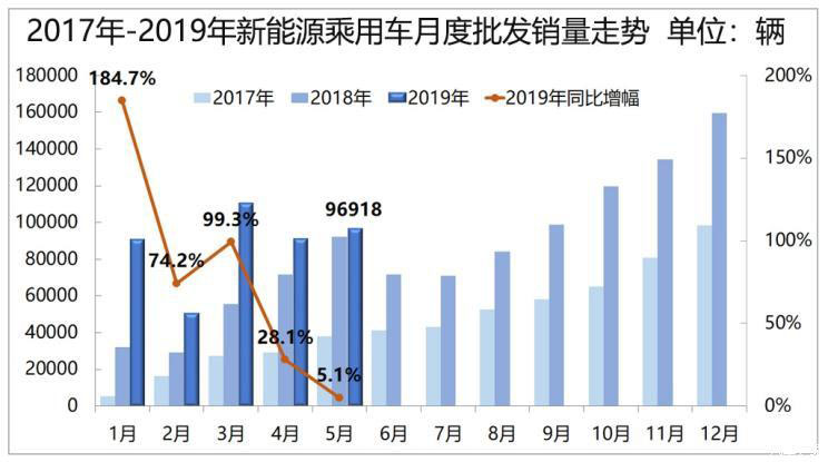 5月份的乘用車車市依然不好看,同比降幅進一步加深,年內(nèi)累計降幅高達(dá)29%。新能源乘用車市場亦如是,繼上月首次出現(xiàn)銷量年中環(huán)比向下之后,5月出現(xiàn)史上最低的同比增長幅度——5.13%!這樣的月度同比增幅在行業(yè)高歌猛進的2018年、2017年是想都不想不出的——2018年有四個月、2017年有兩個月的銷量同比增幅超過100%。為什么今年的新能源汽車市場風(fēng)光暗淡了?后市走向會是如何?本期透視帶您一窺究竟。