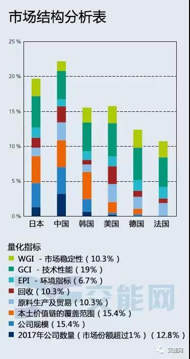 就市場結(jié)構(gòu)而言,中國目前在日本排名第一,領(lǐng)先于日本。由于高需求動態(tài)以及電池生產(chǎn)能力(工業(yè)體量)的巨大積累,新公司可以在價(jià)值鏈中立足。特別自2016年以來,與日本和韓國相比,許多小公司已經(jīng)能夠在中國的電池和電動汽車增長市場中占據(jù)一席之地。中國在市場結(jié)構(gòu)方面的優(yōu)勢之一仍然是獲取本國的原材料(生產(chǎn))和整個(gè)價(jià)值鏈的覆蓋范圍。雖然在環(huán)境評估和治理方面仍有一些負(fù)面影響,但不會影響中國在這方面的地位。