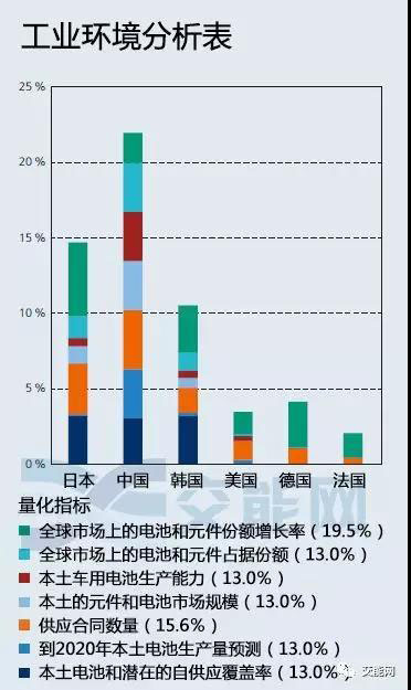 該類別使用七個(gè)指標(biāo)分析各國的工業(yè)環(huán)境:電池的生產(chǎn)和生產(chǎn)預(yù)測,覆蓋鋰離子電池自身使用的潛力,價(jià)值鏈的結(jié)構(gòu),自己國家的銷售市場,世界市場份額以及在供應(yīng)合同數(shù)量的基礎(chǔ)上描述了各國的工業(yè)環(huán)境指標(biāo)。