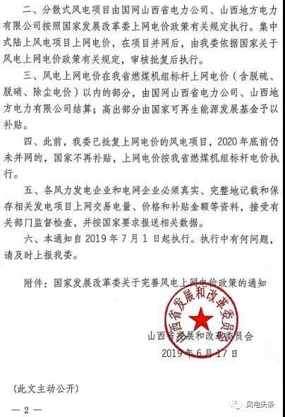 4、此前,山西省發(fā)改委已批復(fù)上網(wǎng)電價(jià)的風(fēng)電項(xiàng)目,2020年底前仍未并網(wǎng)的,國(guó)家不再補(bǔ)貼,上網(wǎng)電價(jià)按山西省燃煤機(jī)組標(biāo)桿電價(jià)執(zhí)行。