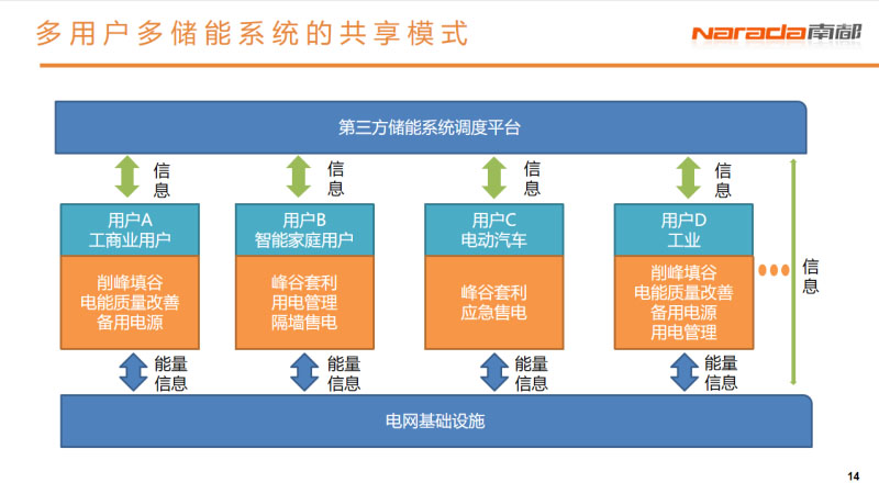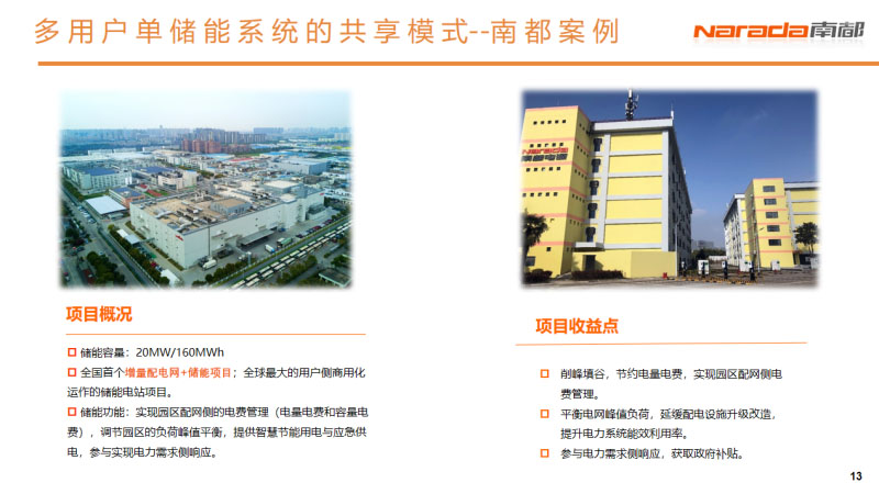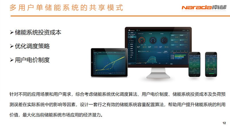 同時也要綜合考慮整個儲能系統(tǒng)的配置,目前南都做了很多的儲能系統(tǒng)方案,我們會發(fā)現(xiàn)你要考慮它的綜合投資成本,要考慮它的調度策略,要考慮它的負荷預測,我們基于的是用戶的歷史數(shù)據(jù),并不是說你用電量大你就一定能做儲能,這個我們也是排除了很多可能性的風險因素,包括你的占地面積,各種因素考慮之后,我們才會決定我們一方要不要上儲能設備,這個不是簡單的說只要你用電量大,只要你想做,只要你有額外的充電量,你就可以上儲能,這個還有很多的前提條件。我們目前在無錫星州工業(yè)園就做了一個多用戶單儲能系統(tǒng),每天能放16萬的電。什么概念呢,它這個工業(yè)園區(qū)每個月的用電量在6000萬到7000萬度,我們每天保證儲能能夠放16萬度電。工業(yè)園區(qū)里面有好多家企業(yè),每家企業(yè)的用電肯定是存在差異性的,這個對園區(qū)來說,肯定是有效益的,而且我們幫助用戶,如果用戶他有檢修的一些需求,他有需求側響應的需求,我們儲能都能幫他實現(xiàn),所以儲能在這里面體現(xiàn)的是綜合價值。