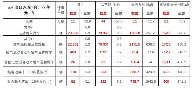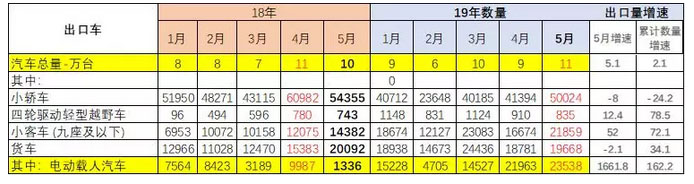 2019年1到5月份,新能源汽車出口8萬臺,同比增長162%表現(xiàn)突出,這也是很好的數(shù)量表現(xiàn)。