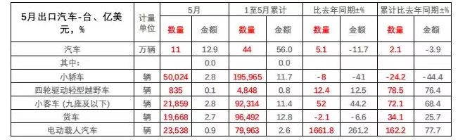 雖然由于避稅因素的3月出口較強。2019年1到5月份,中國汽車出口44萬臺,同比增長6%,1到5月份出口額達到56億美元,同比增長-4%,出口表現(xiàn)較好。