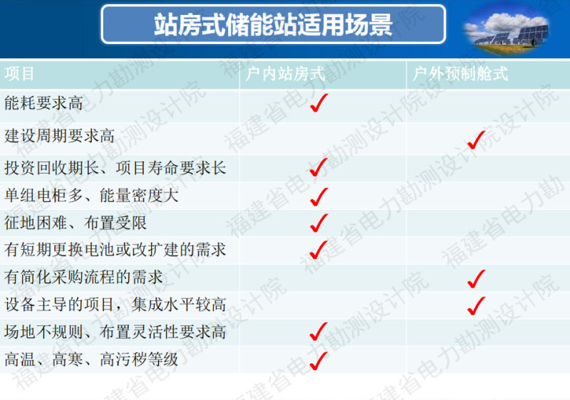 綜合以上的優(yōu)點(diǎn)可以總結(jié)兩種方案的適用場(chǎng)景,對(duì)于能耗要求高還有高溫、高寒的地區(qū),投資回收期又很長(zhǎng),項(xiàng)目的壽命要求很長(zhǎng),單組電柜多,能量密度大,布置受限的情況,尤其在有短期更換電池或者改擴(kuò)建需要的場(chǎng)景,我們會(huì)推薦站房式的儲(chǔ)能,因?yàn)樗牟贾梅绞奖容^靈活。