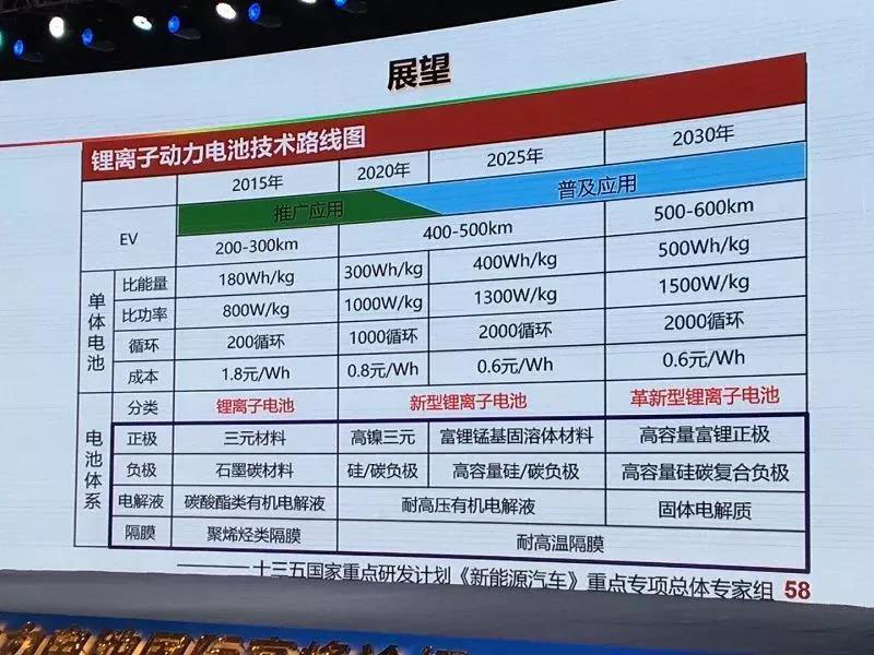 在此基礎(chǔ)上,國(guó)家新能源汽車重點(diǎn)專項(xiàng)的專家組在兩年前形成了下一步鋰離子動(dòng)力電池技術(shù)路線圖,要形成安全的高比能量電池。