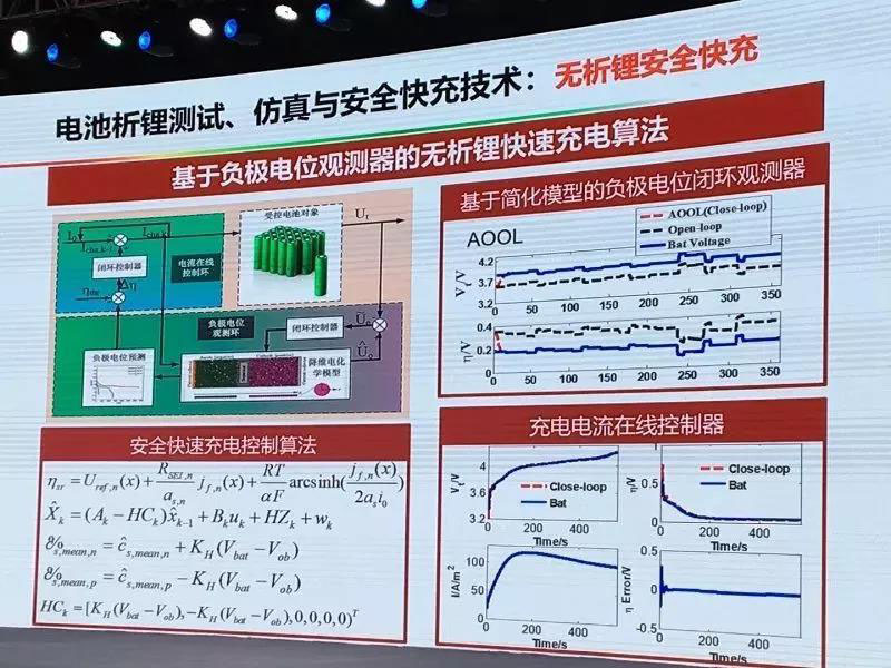 以此為基礎(chǔ),我們可以進(jìn)行最優(yōu)充電的控制,以基于模型的負(fù)極電位觀測(cè)器為基礎(chǔ),可以把負(fù)極電位觀測(cè)出來的電位,跟參考電位進(jìn)行比較,通過調(diào)整充電電流使這個(gè)電位差趨于零可以實(shí)現(xiàn)無析鋰的快充。