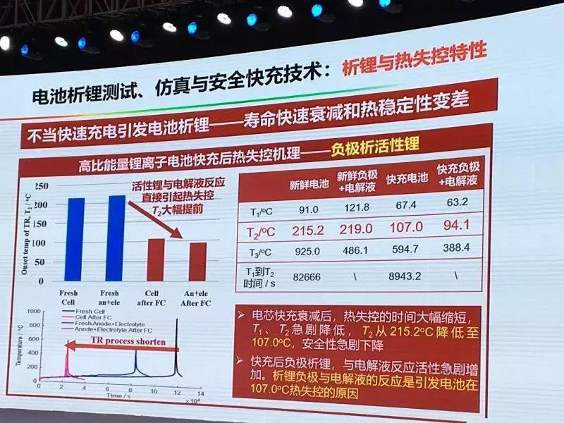 近期發(fā)生的充電事故的分析表明,主要是不當(dāng)快速充電或過充引發(fā)電池析鋰,導(dǎo)致熱失控溫度大幅度下降,從219℃下降到107℃,并與電解液劇烈反應(yīng),電池在107℃發(fā)生熱失控。