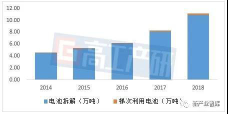 2014-2018年中國(guó)鋰電池拆解與梯次利用規(guī)模(單位:萬(wàn)噸)