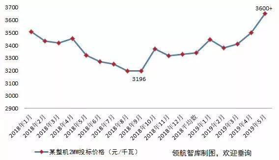 當(dāng)前風(fēng)機(jī)招投標(biāo)價(jià)格卻呈現(xiàn)大幅上漲趨勢(shì)。據(jù)了解,3400元以下風(fēng)機(jī)訂單幾乎沒(méi)有了,第一、二梯隊(duì)的整機(jī)廠家也將風(fēng)機(jī)價(jià)格定在3500元以上,甚至出現(xiàn)了3600/3700元的價(jià)格,整體價(jià)格上漲在200-300元是正?,F(xiàn)象。北京國(guó)電電力新能源技術(shù)有限公司總經(jīng)理董霞威認(rèn)為2019年后半年風(fēng)機(jī)價(jià)格還將會(huì)有所突破。