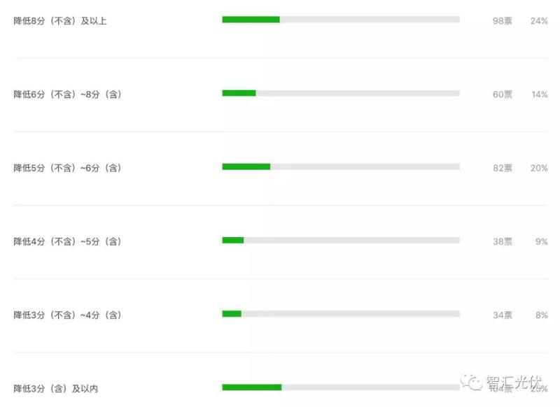 6月27日,做了一個(gè)申報(bào)電價(jià)的小調(diào)查,詳見《光伏申報(bào)電價(jià),大家都降了幾分錢?》,目前獲得416張投票,結(jié)果如下圖所示。