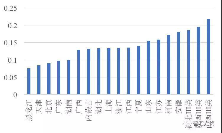 上述省份,按照標(biāo)桿電價(jià)計(jì)算,直接補(bǔ)貼強(qiáng)度如下圖所示。