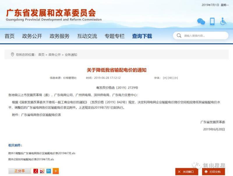 6月28日,廣東省發(fā)改委發(fā)布《關(guān)于降低我省輸配電價的通知》,通知中稱決定利用電網(wǎng)企業(yè)輸配電價降價空間相應(yīng)降低我省輸配電價水平。此次輸配電價降價的幅度為2.07分/千瓦時,自7月1日起執(zhí)行。