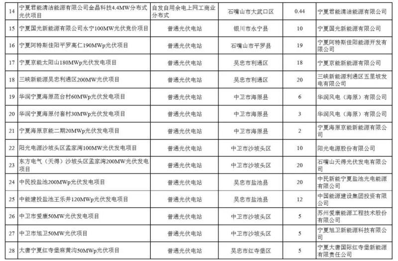 7月2日,寧夏發(fā)改委發(fā)布《關(guān)于全區(qū)2019年光伏發(fā)電國(guó)家補(bǔ)貼競(jìng)價(jià)項(xiàng)目審核結(jié)果的通知》,經(jīng)過(guò)對(duì)各地初審并推薦上報(bào)2019年光伏發(fā)電項(xiàng)目的主體規(guī)模、電網(wǎng)接入、土地利用及稅費(fèi)政策等條件進(jìn)行審核,確定了30個(gè)項(xiàng)目總?cè)萘?79.42687萬(wàn)千瓦參與2019年光伏發(fā)電國(guó)家補(bǔ)貼競(jìng)價(jià),其中普通地面電站16個(gè)、全額上網(wǎng)工商業(yè)分布式3個(gè)、自發(fā)自用余電上網(wǎng)工商業(yè)分布式11個(gè),具體名單見(jiàn)下表。