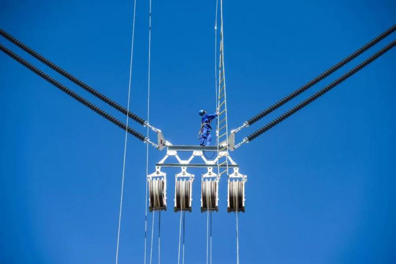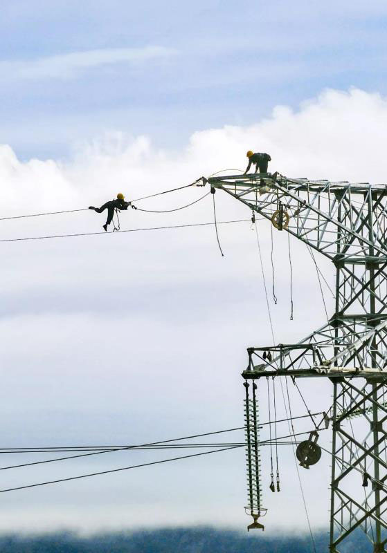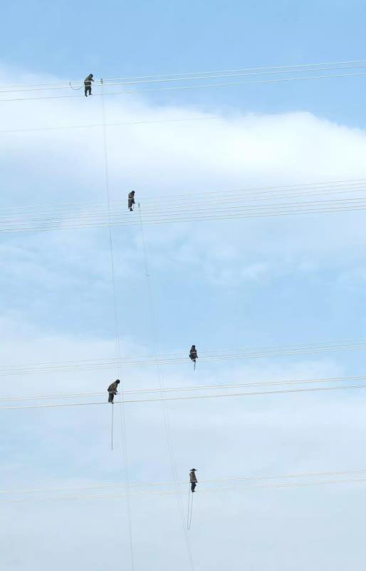 ▼2018年4月28日,國家電網日照供電公司工人架設叩官鎮(zhèn)至兩城高鐵預留站高壓線路,確保兩城高鐵站投入使用后的電力供應,攝影師@高興建