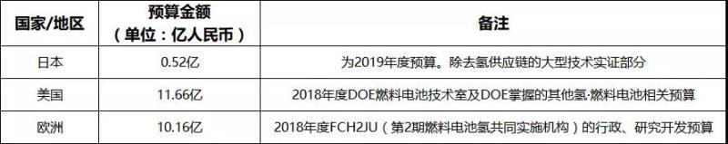 另外,關于日本、美國、歐洲對于氫能和燃料電池領域相關技術開發(fā)的預算情況NEDO也做了公布,具體如下圖所示。
