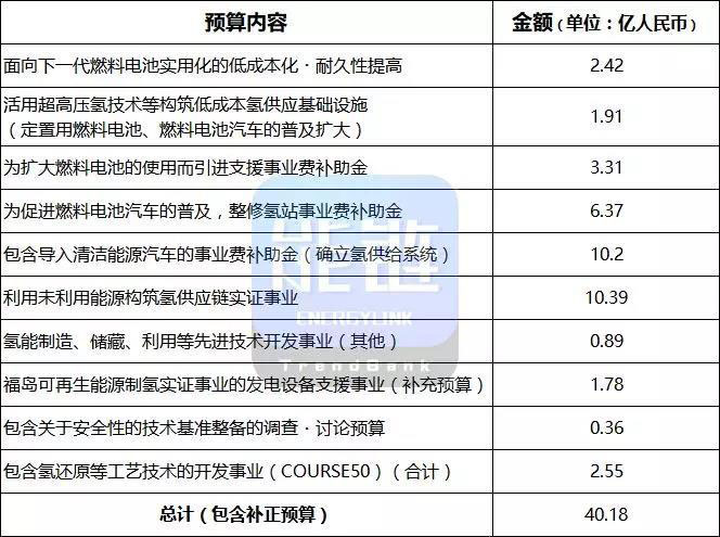 如上表所示,2019年日本在氫能·燃料電池相關領域的總預算達40.18億人民幣。